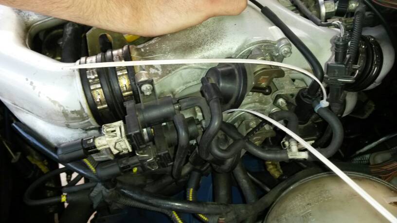 schau mal unter die Drosselklappe.Da ist ein Schlauch dran.Wo geht der hin?