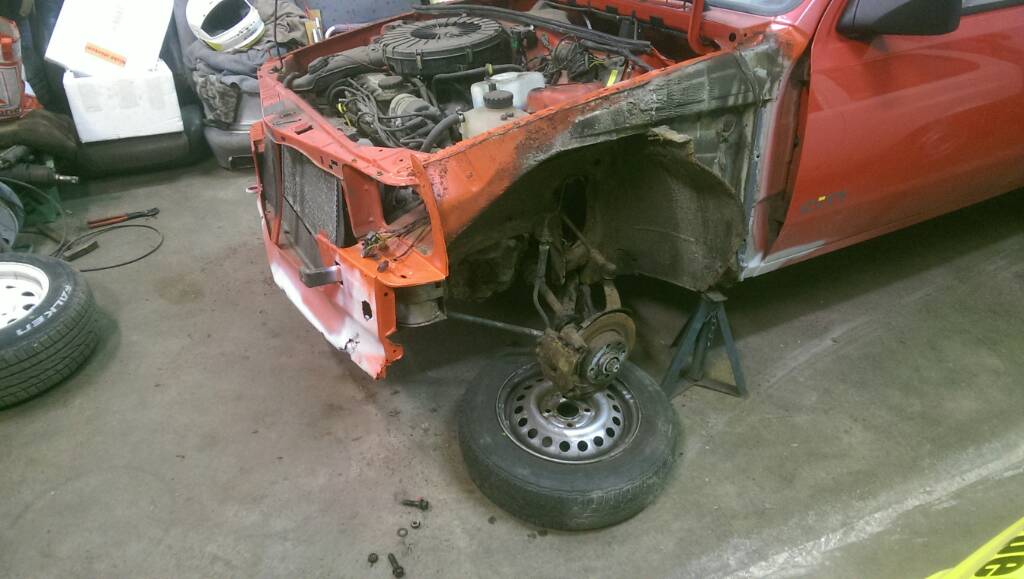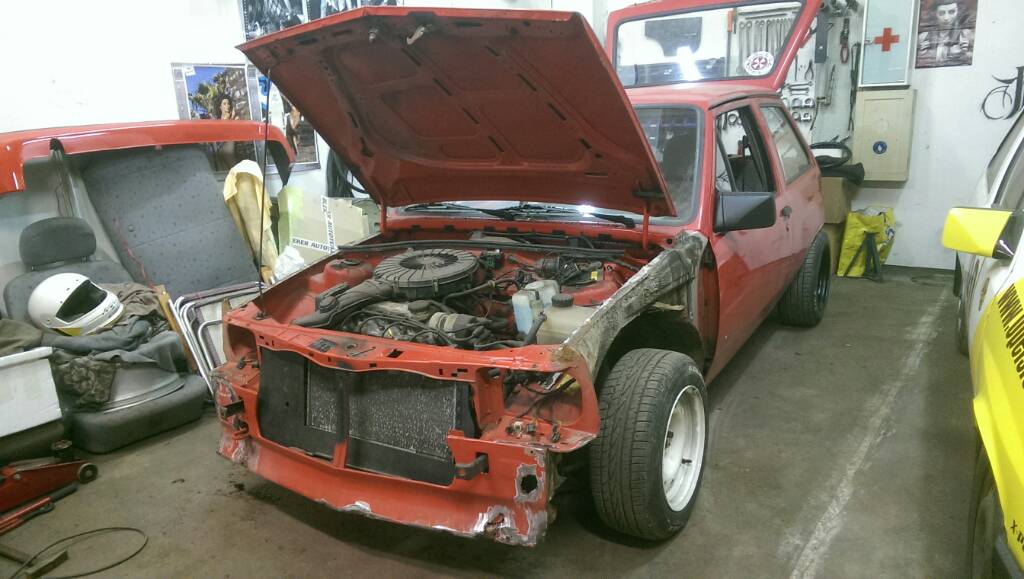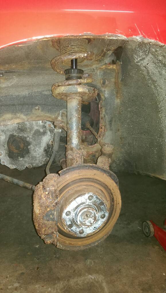 Fahrwerk vorn ist nun getauscht,samt Domlager. die Mattig haben ihre neue Farbe und die Kotflügel haben wieder ihren Platz eingenommen. Frisch kommt das gute Magmarot echt Geil.
