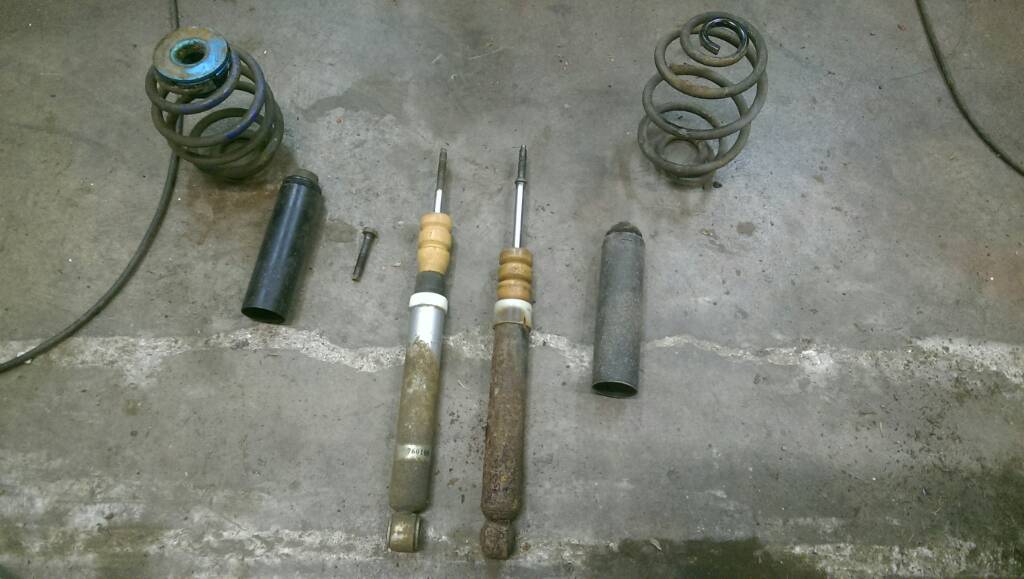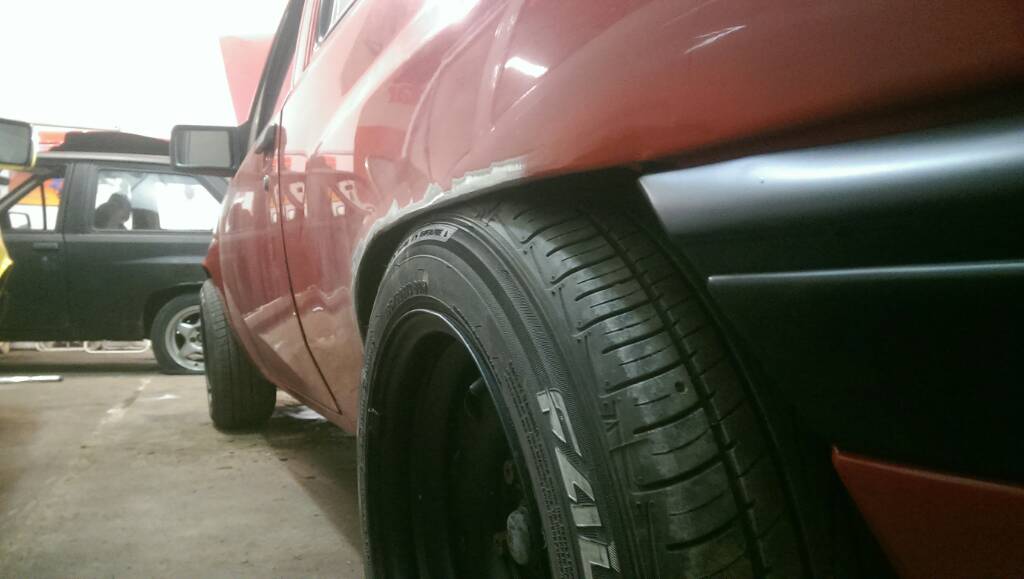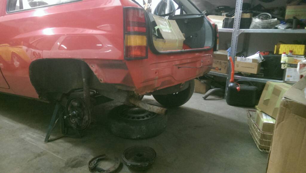 So langsam wird's. Federn und stoßdämpfer hinten sind schon getauscht. Die Mattig Felgen werden jetzt schwarz Matt und kommen auf den roten. Der Rallye bekommt demnächst 14" Gullideckel vom E30. Die kommen den alten ATS Felgen sehr nahe und 14" sind schon allein für die Bremse besser,da ist dann mehr Platz zur Felge als der 1/2 Zentimeter mit den mattig.