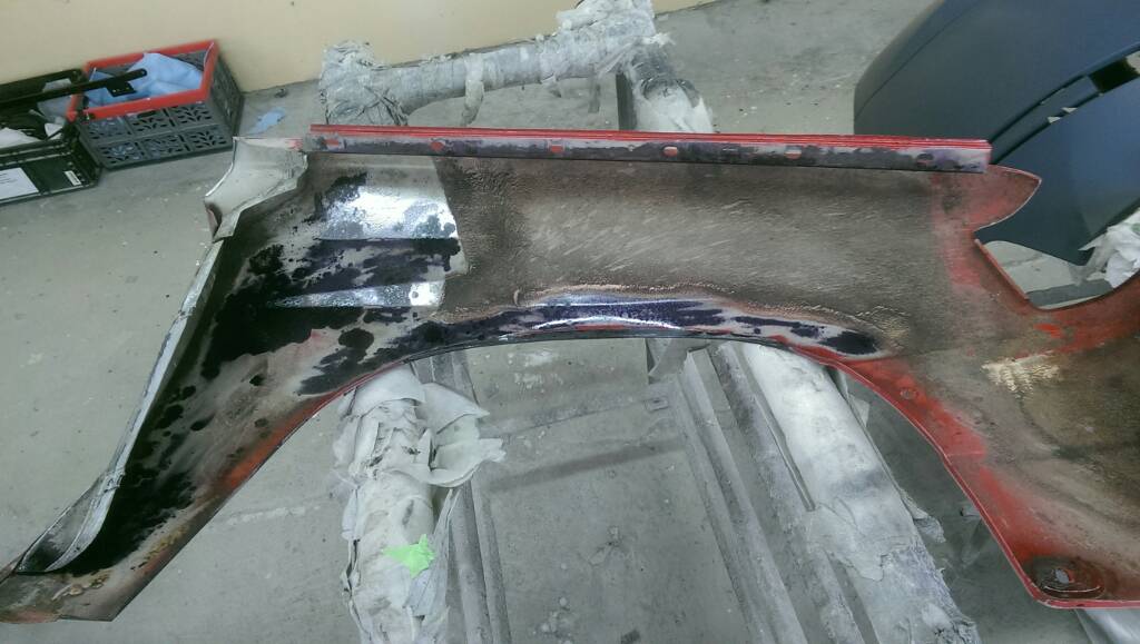 Jetzt geht der Rest der Front noch zum Lackieren und ich fang zwischendurch an die Radläufe hinten zu ziehen.