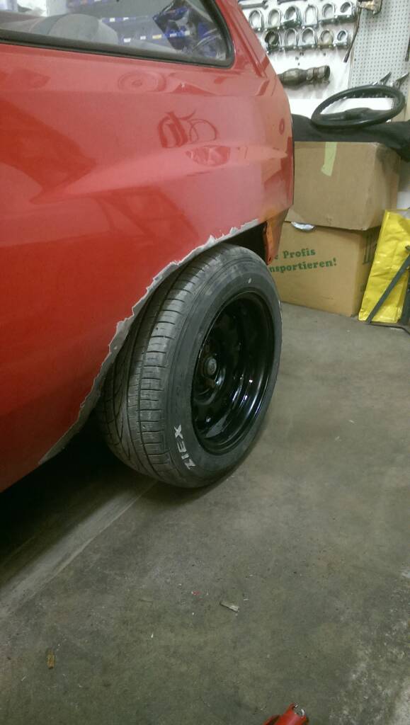 Radlaufe begonnen zu bearbeiten damit die Mattig drunter passen und nachdem das Heckblech restauriert ist mal die aufgefrischte Heckstoßstange angehalten. Das wird ein lecker Corsa.