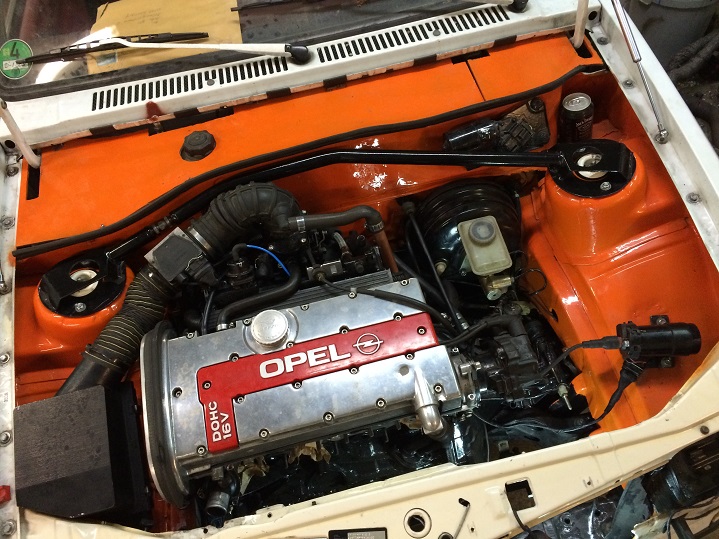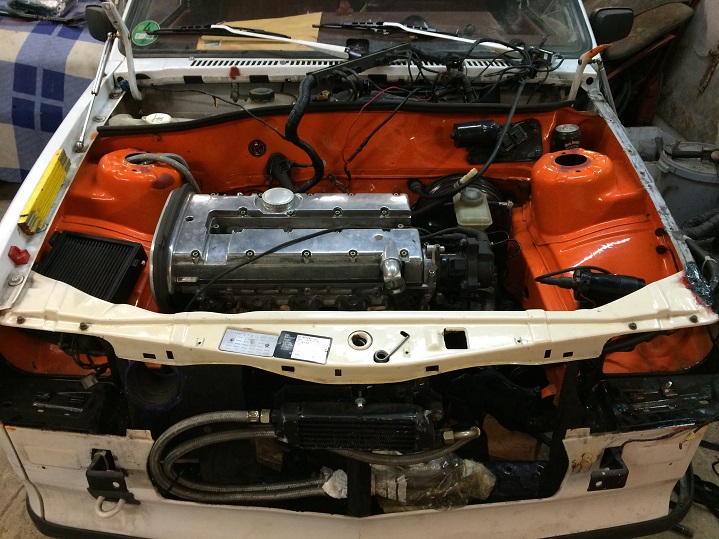 Der Motor hängt (nach langem Gerödel, alleine) in der Karosse.