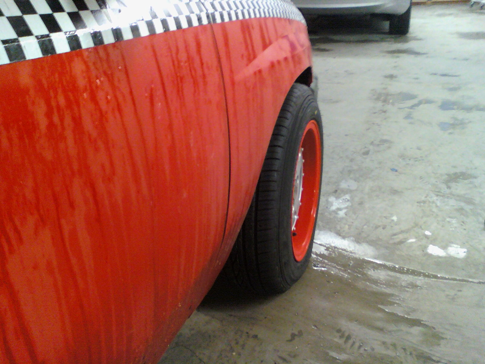 ICH hab jetzt wieder ein paar aktuelle Pix und ich hab nie Räder vorn mal draufgesteckt.Lauffläche ist vom Kotflügel abgedeckt,nicht sehr viel,aber immerhin.Kotflügel sind nun auch