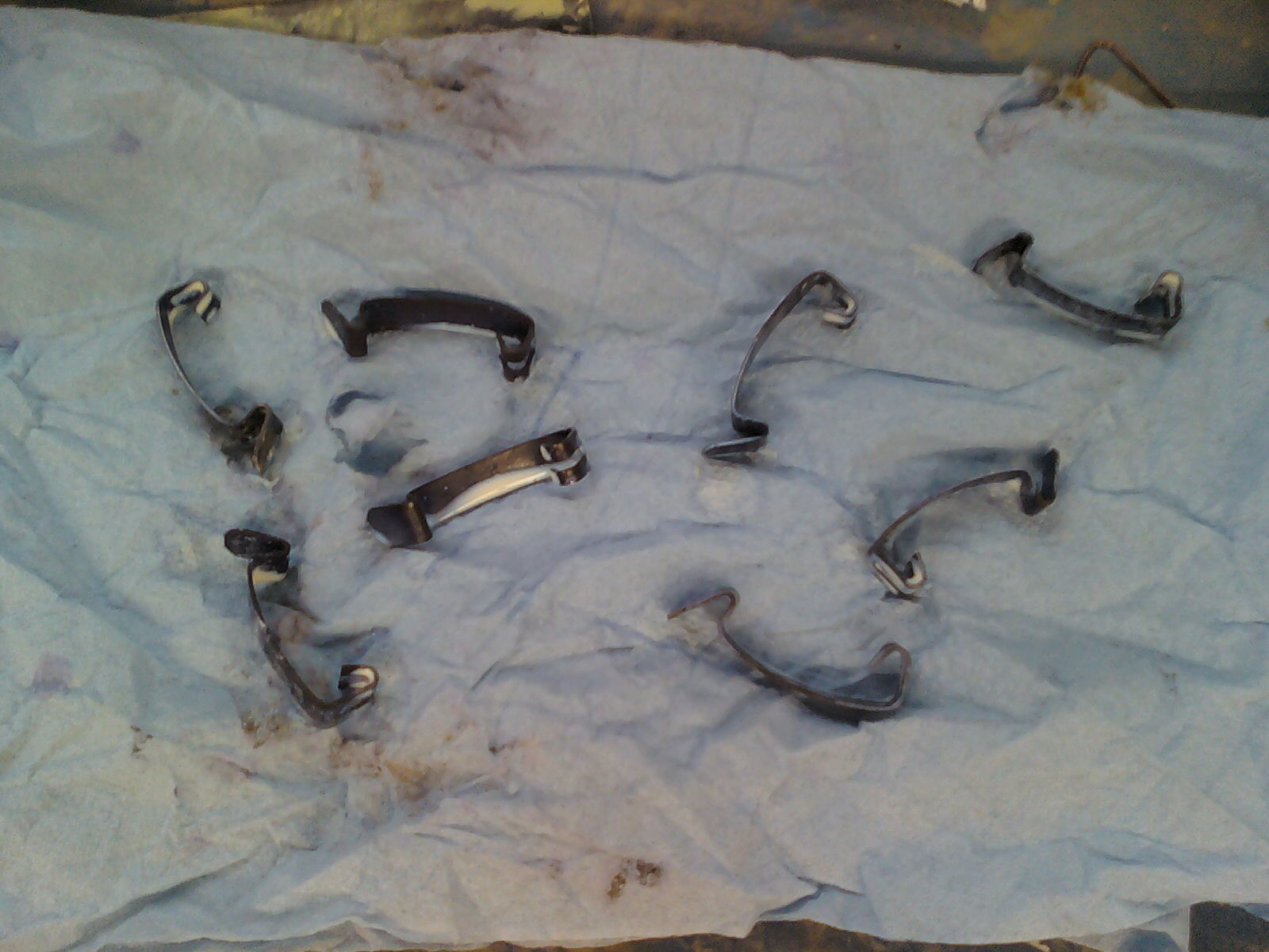 Hier Ufo und Ufoklemmen,lackiert,mit Rostumwandler behandelt und in Batteriesäure