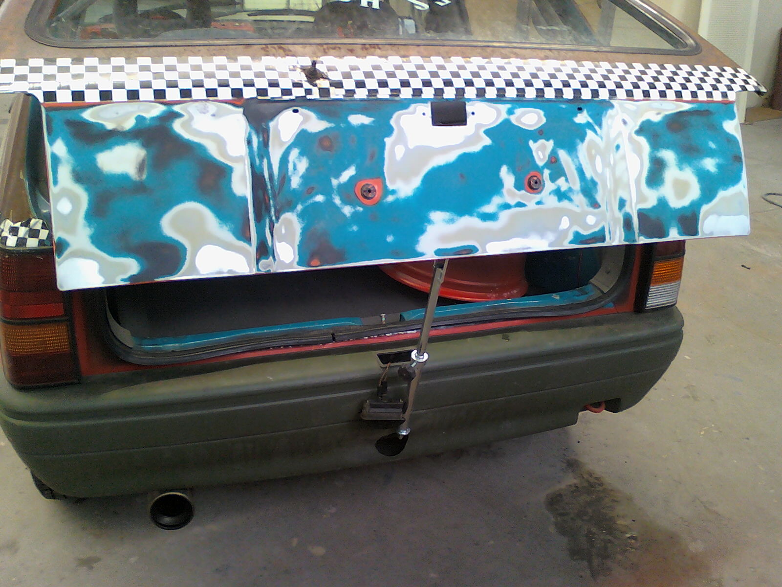 Hab mich heut mal wieder ein wenig um den Rost gekümmert,ihn entfernt und auch gleich noch Heckklappe und die beiden Türen grundiert.