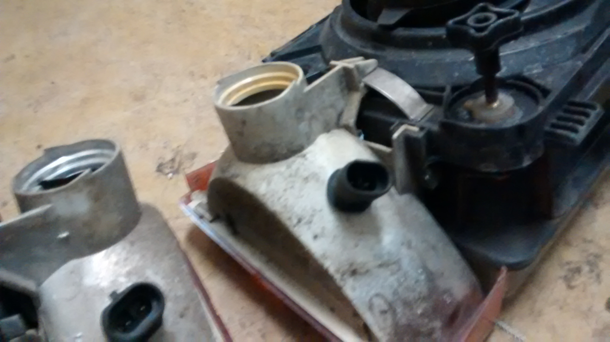 Aus meinem Sammelsurium an Scheinwerfern fix zwei Standlicht-Fassungen genommen und in die Blinker löcher gebohrt. Kabel Anschließen und fertig ist das US Standlicht. Geht mit dem Standlicht an und ist mit einer 5W Lampe noch dunkel genug, damit man das Blinken sieht.