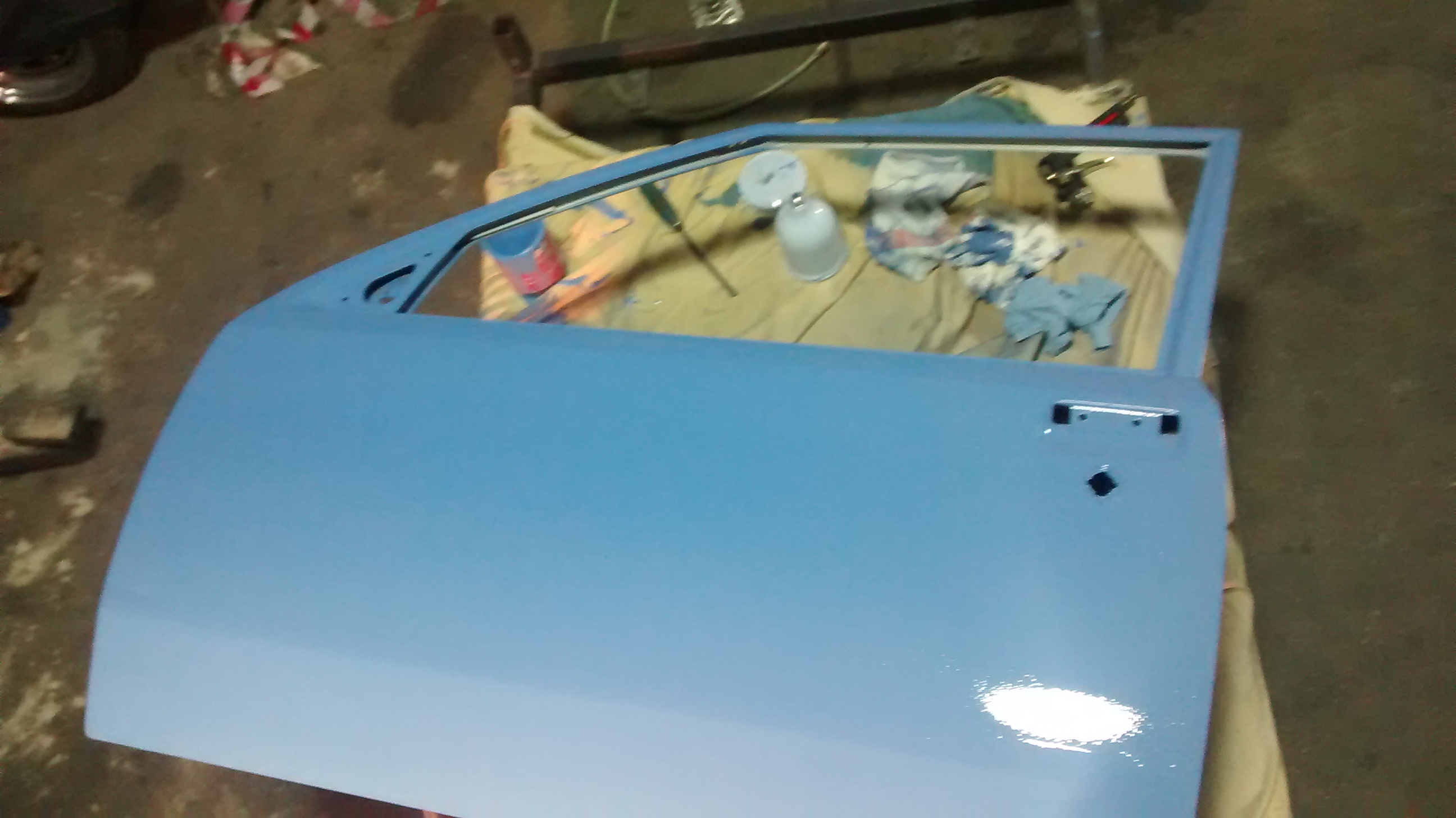 Die Beifahrertür hab ich ja schon. Da kanns bald losgehen mit lackieren.....aber vorher heißt es: schleifen, In Rostumwandler und Konservierung tunken (vorbeugend) spachteln, schleifen, spachteln, schleifen..........füllern, grundieren und dann endlich farbe drauf.