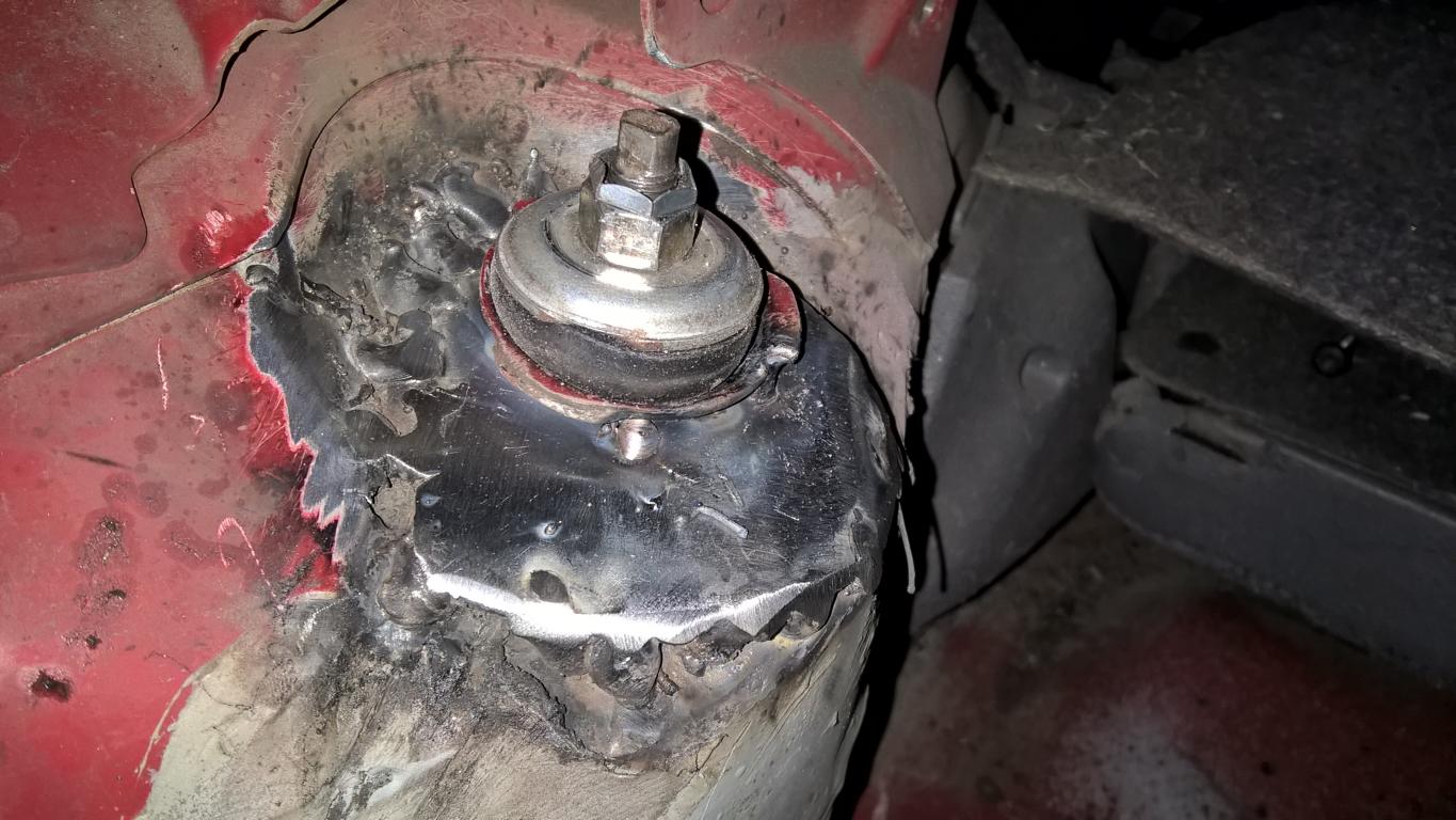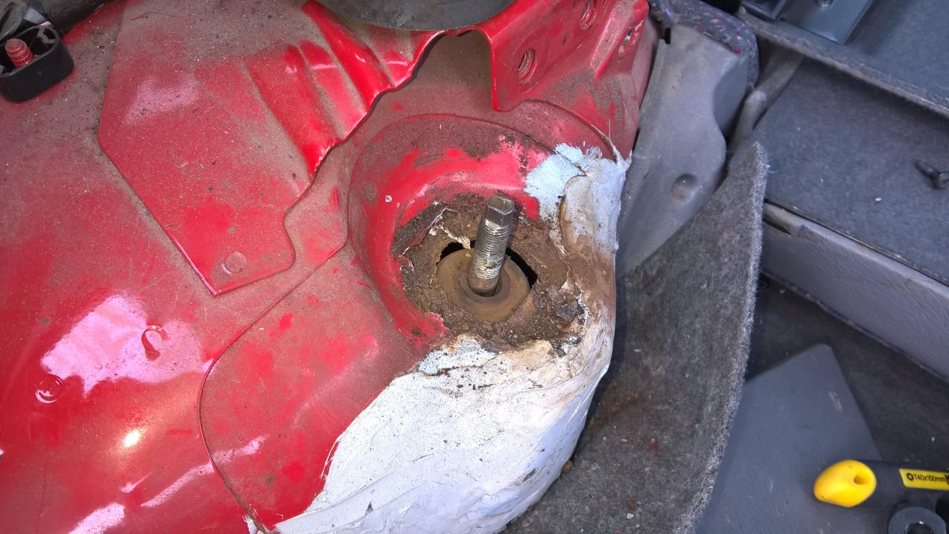 Dann 2 Wochen nach dem TÜV ein knarzen aus dem Kofferraum. Ich habe gehofft, dass etwas in der Reserverradmulde liegt oder so. Als ich im Hellen nur aus Neugier mal die Abdeckung der Stoßdämpferdome im Kofferraum entfernt hab das hier: Wer hat das wohl erwartet? ^^