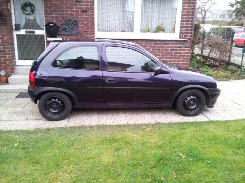 Es ist ein Corsa B in Violett Metallic, Baujahr 1996 und einer 1,2 8v Maschine.