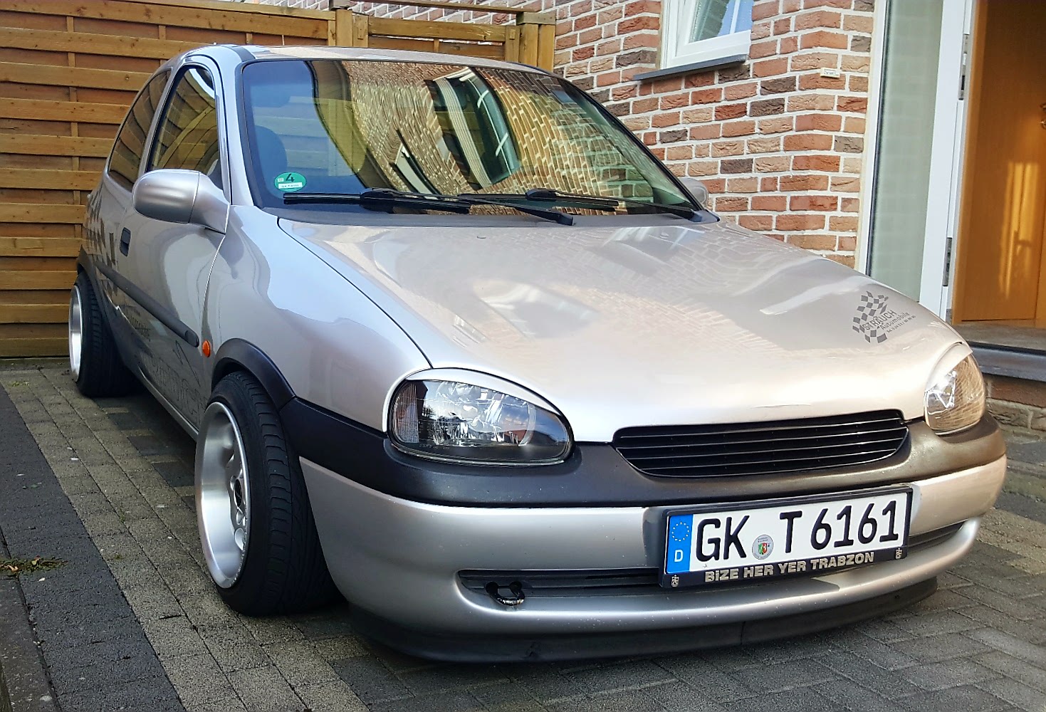 Dein Corsa macht nen sehr gepflegten Eindruck, mir gefällt auch die Farbe in Verbindung mit dem schwarzen ?aufbereiteten? Kunststoff sehr gut.