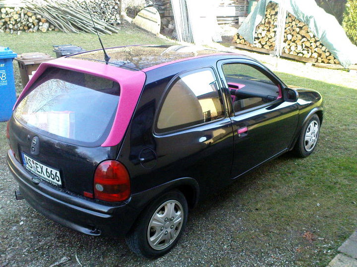 Den Corsa ham wir schon verkauft, ab Mai will ich meinen Kombi wieder anmelden. Idee stammt auch ursprünglich von mein Frauchen, die hat a bissi Pink-Fimmel...
