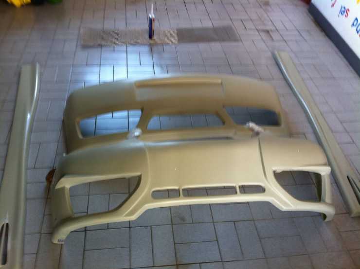 Also Stoßstange ab, gespachtelt, geschliffen, grundiert und lackiert.