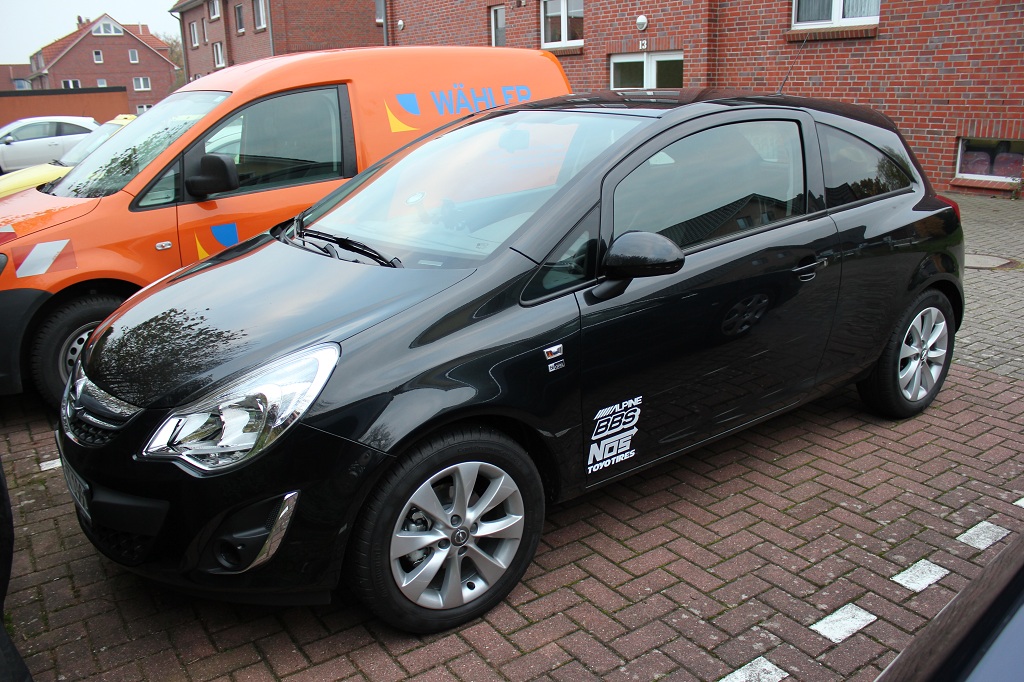 Ein stinknormaler Corsa D, mit wenig Leistung und fürchterlichen, peinlichen Aufklebern, auf der Seite...