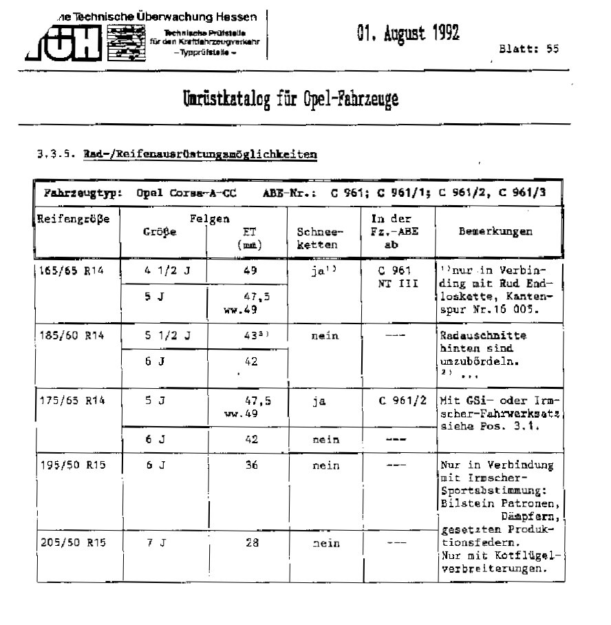 Im Opel-Umrüstkatalog sollten doch alle Felgen drinstehen, die es für den corsa jemals gab, oder?