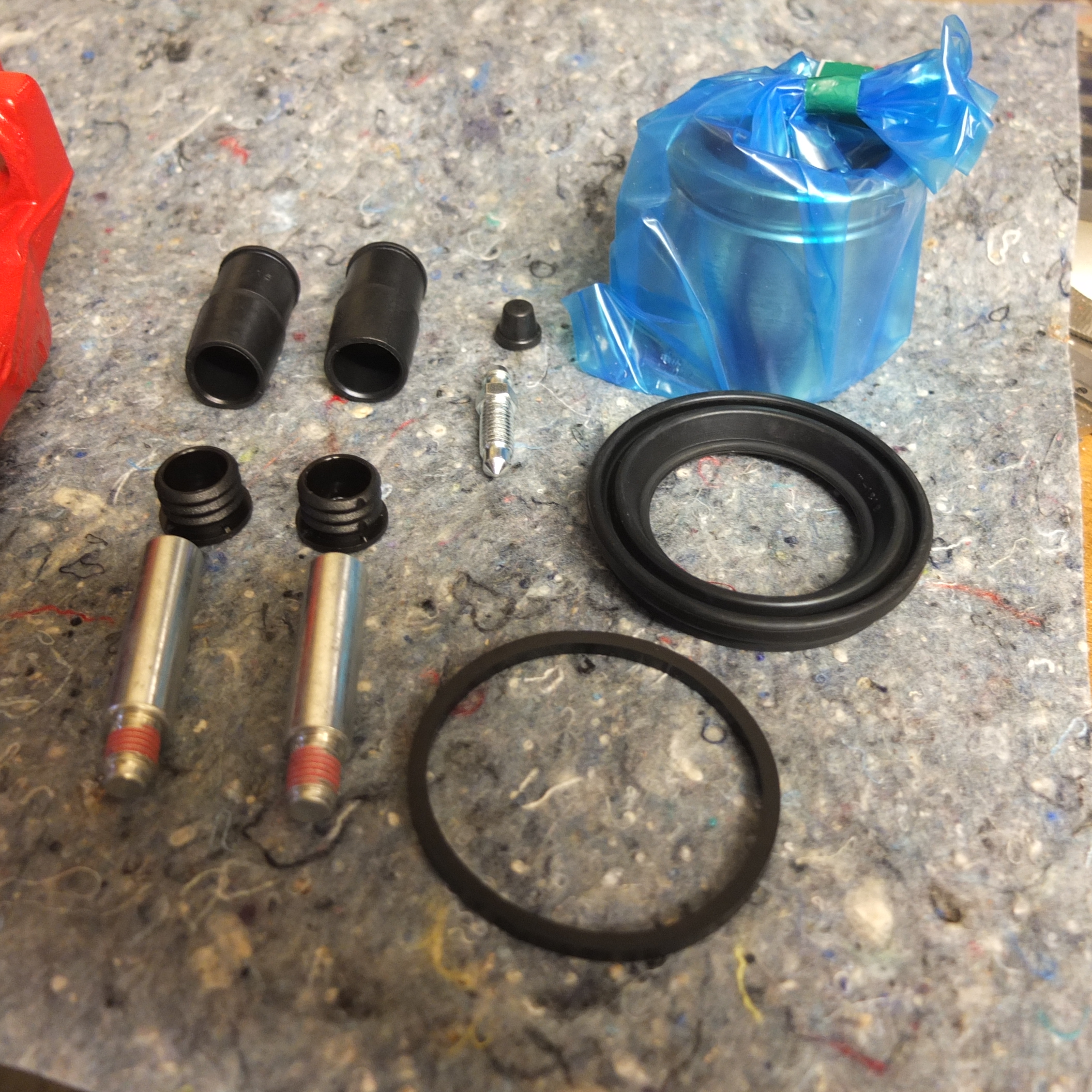 Die Sättel vorne sind lackiert, die Ersatzteile von Frenkit und Autofren sind eingetrudelt.