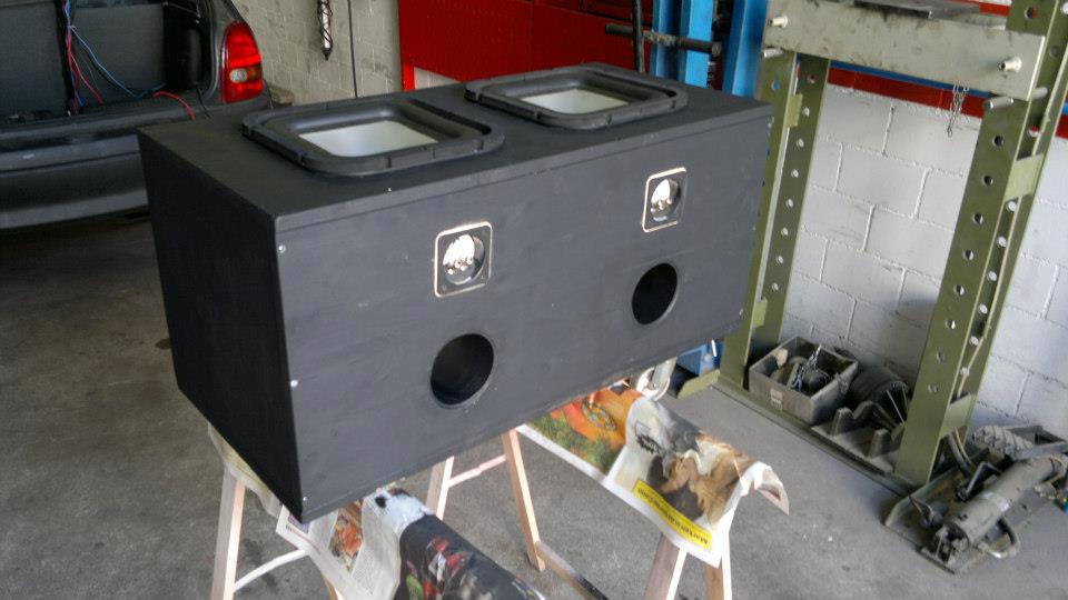 Als Anhang ein Bild von den Boxen in meinem selbstgebauten Gehäuse. Das ist nun mittlerweile 3 Jahre her und seither hat sich nichts mehr getan...