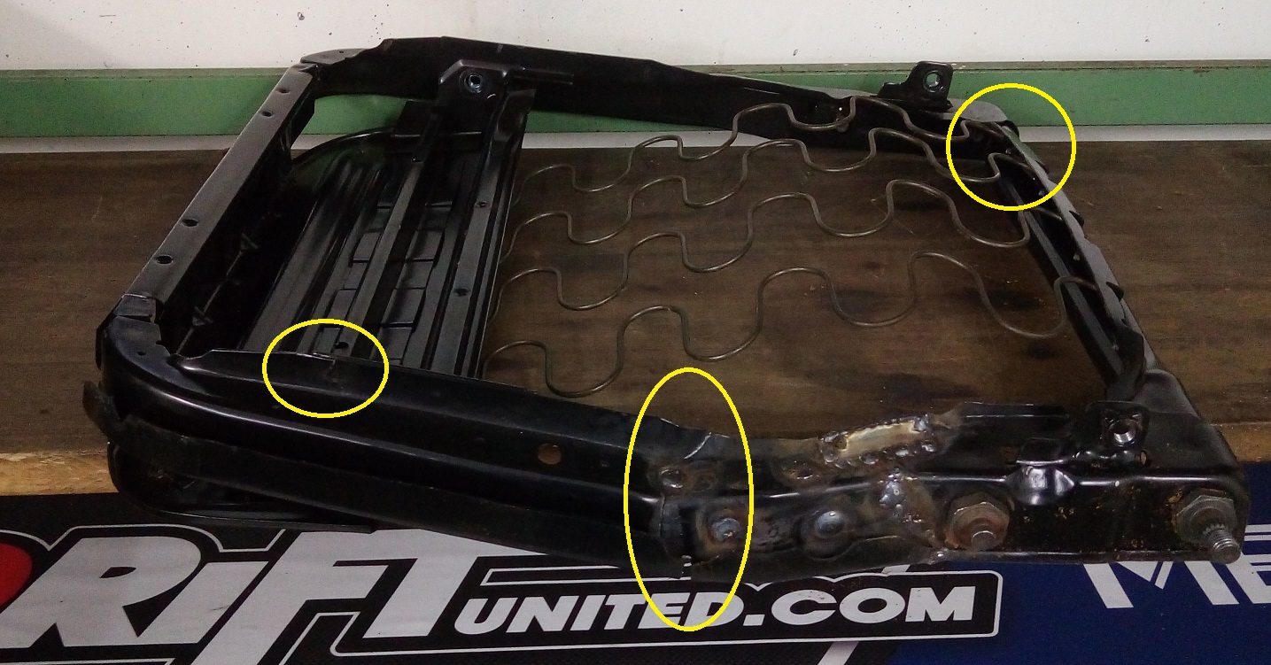 bei meinem wackelte der Sitz auch, er hat es vor zwei Jahren gemacht (vor dem letzten TÜV) und letzte Woche erneut angefangen. Beim letzten Mal war das Sitzgestell gerissen und dieses Mal erneut, allerdigns etwas weiter "links" (Bild).