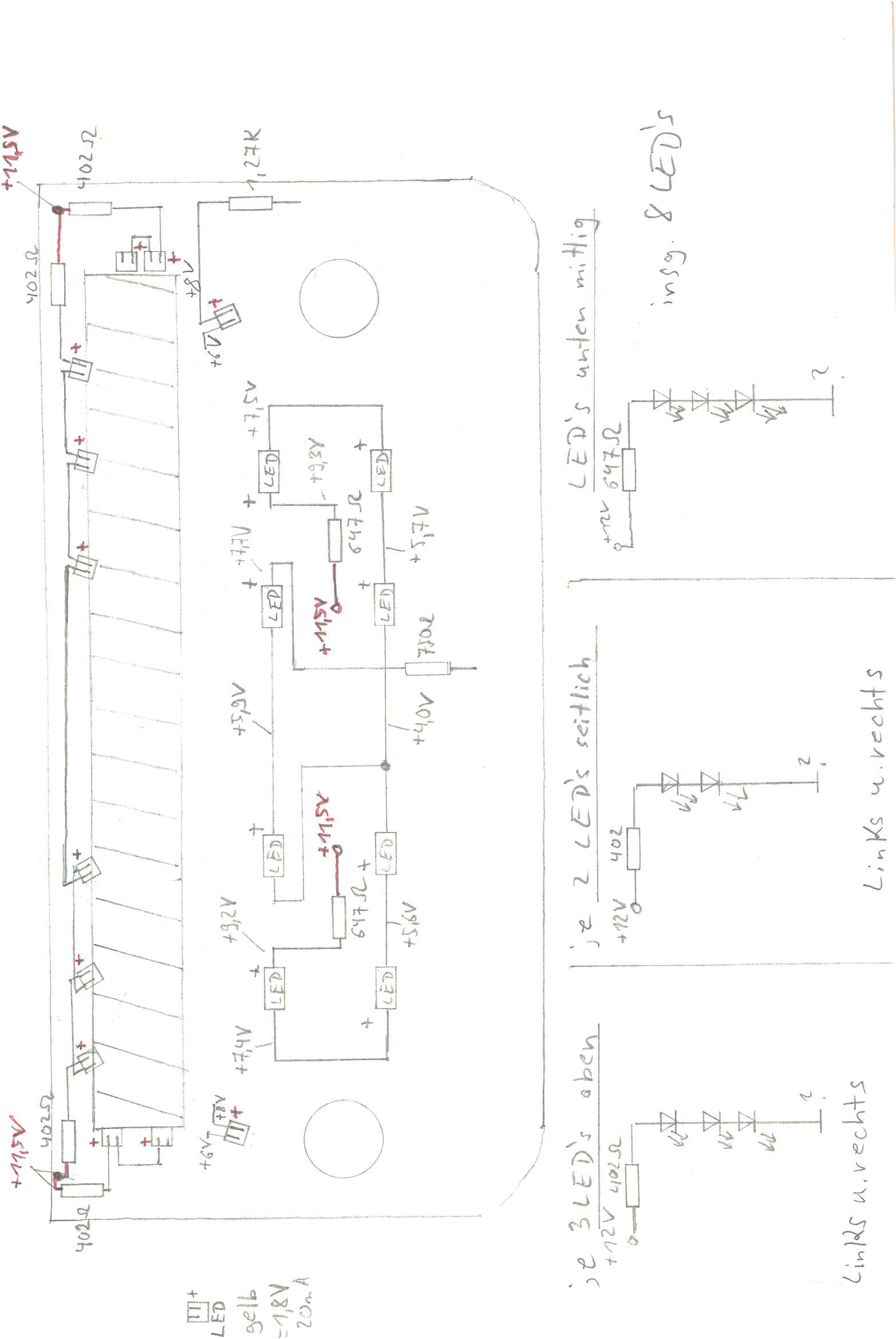 Vorwiderstände habe ich probeweise noch reduziert von 402 Ohm auf 200 Ohm, konnte aber keine Verbesserung