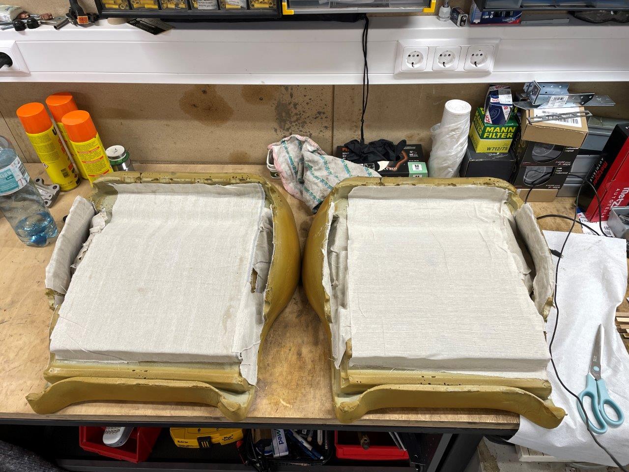 Ich suche aktuell noch das richtige Material mit dem ich den Schaumstoff noch final "überziehen" kann bevor ich wieder den Bezug überstülpe.