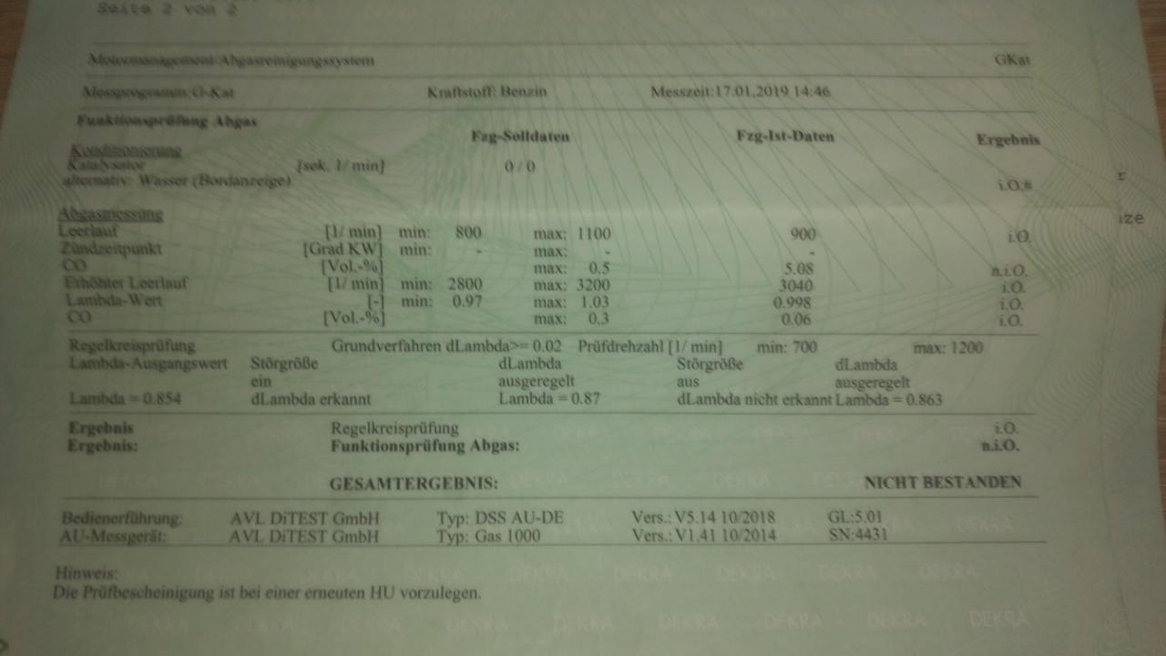 Co wert im normalen Leerlauf hat sich nicht verändert. Wieder durchgerasselt. Dieser Prüfer sagt nun: Ist wohl der Kat kaputt.
