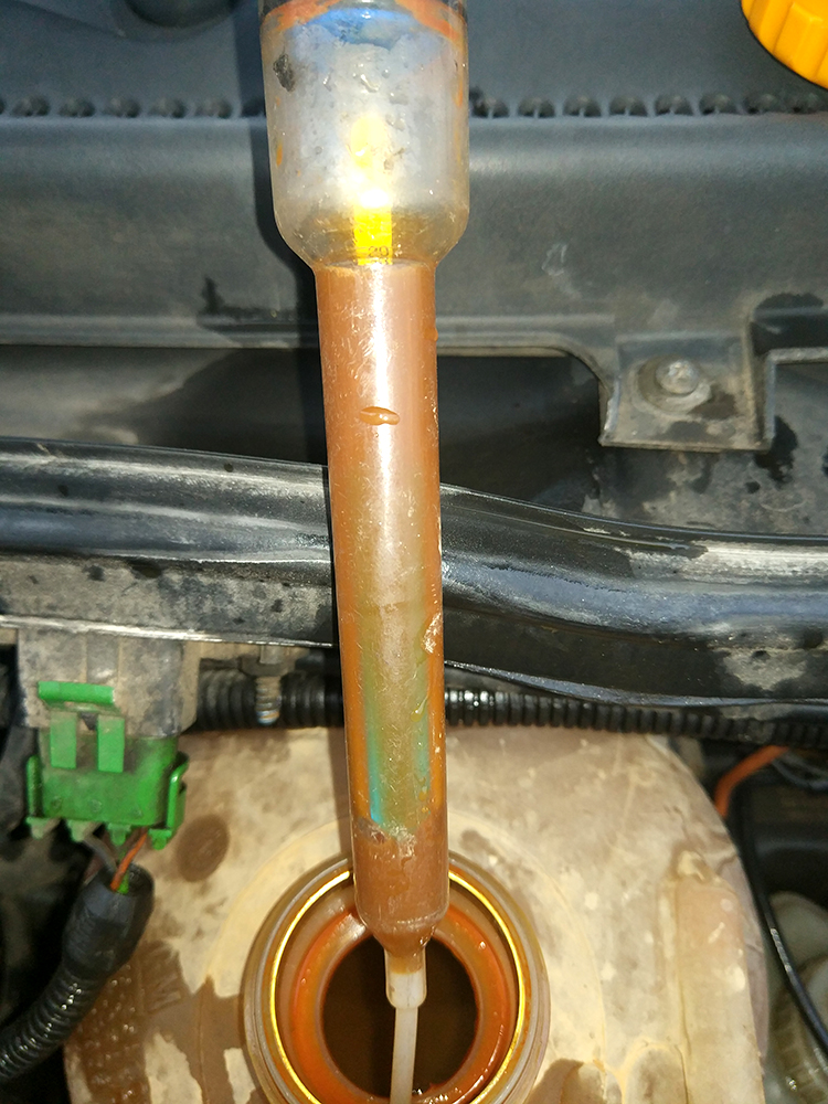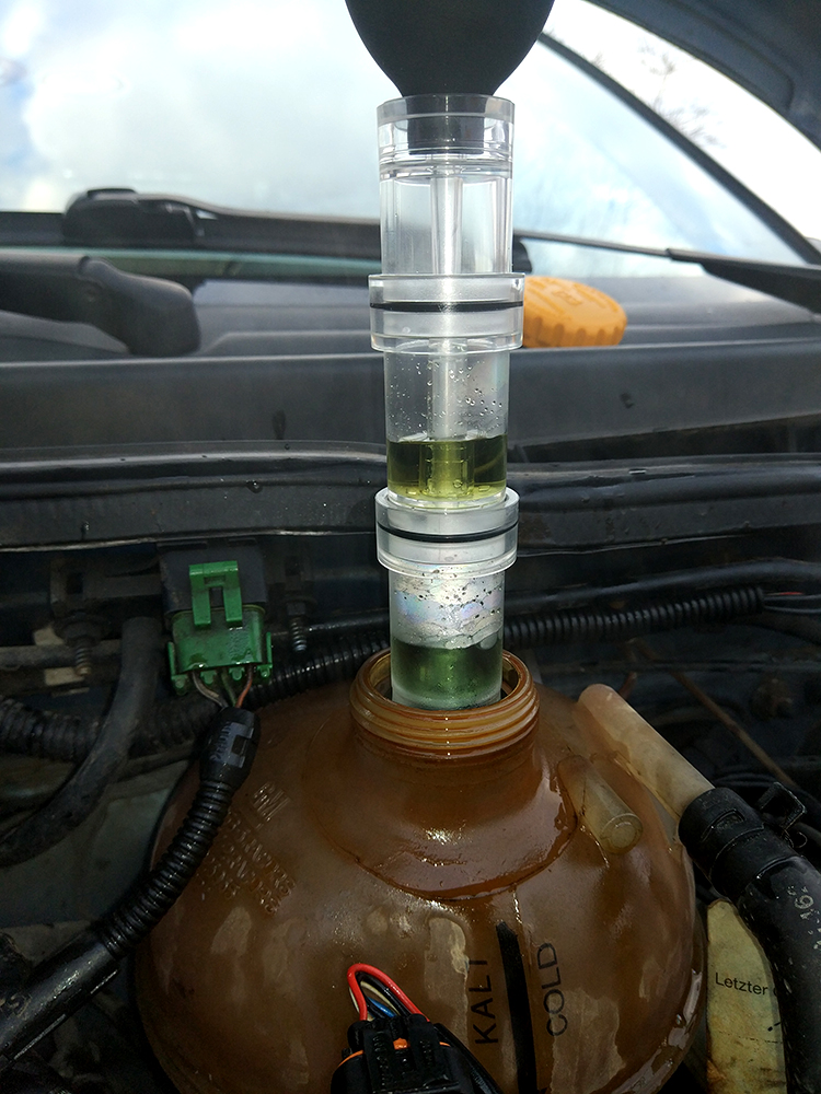 Sooo, bin endlich mal zum testen gekommen. Die Farbe der Testflüssigkeit und der Kühlflüssigkeit sind doch eindeutig, oder?