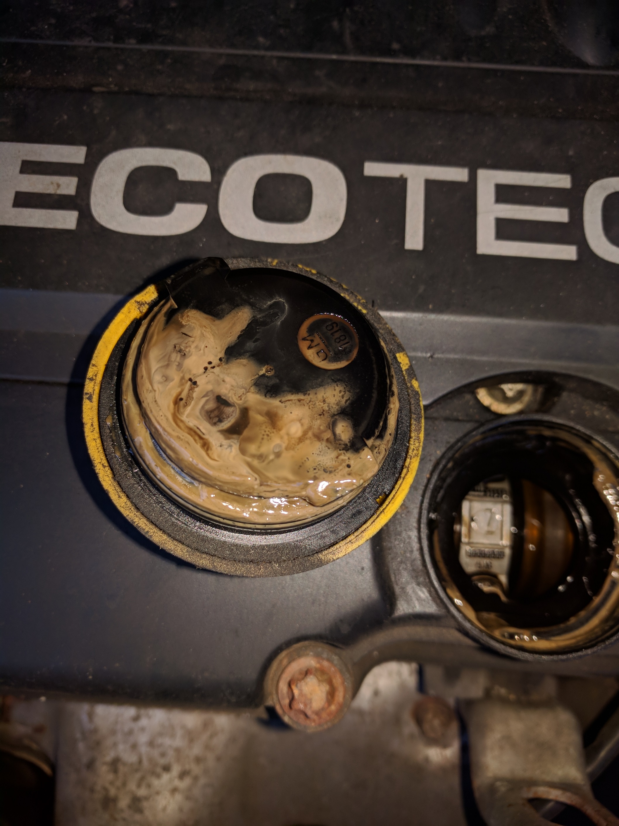 - 1 Schlamm im Öldeckel --> eigentlich kein gutes Zeichen; Könnte ZKD sein. Aber: Absolutes Kurzstreckenfahrzeug (ca.10-15km am Tag Stadt), Kühlwasser klar, Schlamm jetzt nicht übermäßig viel vorhanden (siehe Bild 1+2)