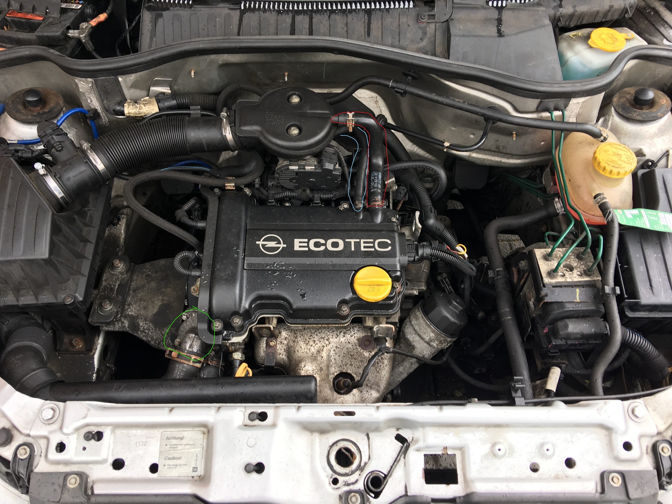 mir wurde beim letzten Check gesagt die Schläuche für die Entlüftung vom Kurbelgehäuse seien undicht und es wird Falschluft gezogen. So die Schläuche sind ja gut sichtbar und die Teilenummern stehen auch drauf aber wie bekomme ich den einen denn ab? Der scheint auf der Rückseite nicht mit so einer Klemme fest zu sein :D Hab den Übeltäter mal auf dem Bild markiert (blau).