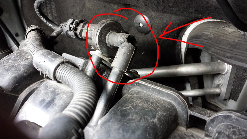 Das Teil nennt sich Tankentlüftungsventil, den Schlauch gibt es einzeln beim FOH und du kannst ihn notdürftig erst einmal mit Isolierband flicken, Hauptsache die Ecke ist dicht.