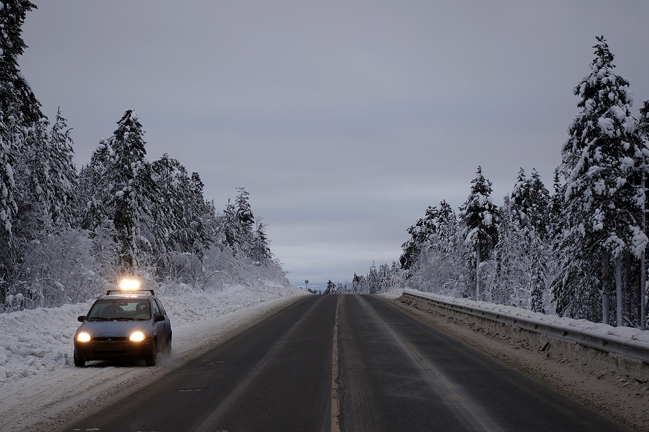 Es gibt eine Straße, die führt von St. Petersburg nach Murmansk und ist 1.400km lang. Auf die (R21) bin ich jetzt abgebogen und folge der bis ganz in den Norden. Die R21 ist die einzige und damit Hauptstraße in den Norden. Entsprechend gut ausgebaut ist sie (inzwischen), aber auch stark befahren. Meistens gut geräumt, trotzdem spiegelglatt. Aber rollt. Ich habe keine Probleme. Tempomat auf 90km/h klappt meistens.