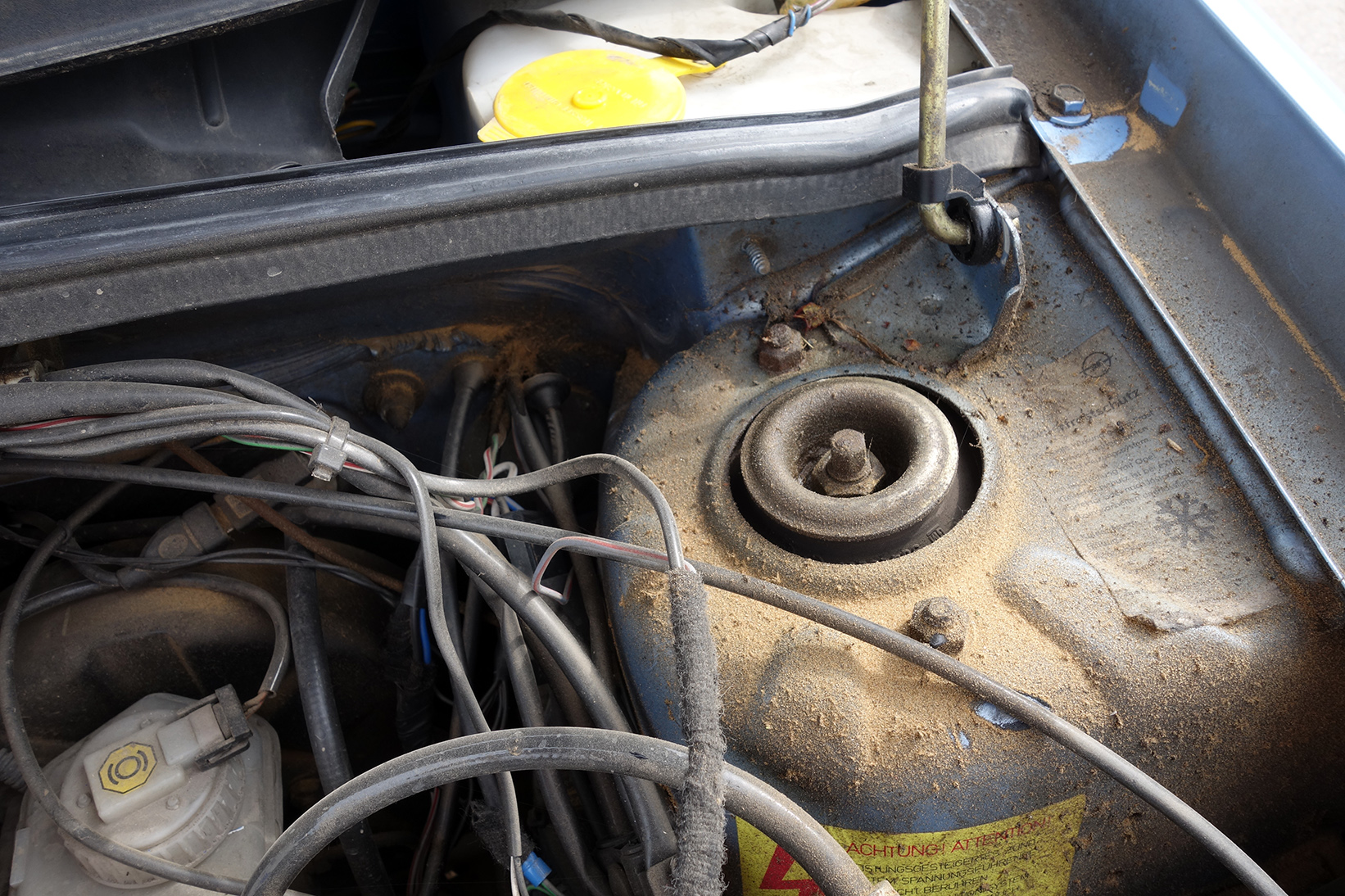 nach meinem kleinen Wüstenausflug sieht mein Motorraum (und andere Teile des Autos) nun so aus, wie unten zu sehen. Dank ausführlicher Hohlraumkonservierung klebt der Sand auch besonders gut. Wegwischen habe ich schon probiert, das geht nur mit zuviel Kraftaufwand und daher Lackverkratzung einher. Ich wollte an einer normalen Selbstbedienungswaschanlage mal mit dem Kärcher durch gehen. Dass ich um die Elektrik/Elektronik einen großen Bogen machen muss, ist mir klar. Den Motor selbst will/muss ich auch nicht reinigen.