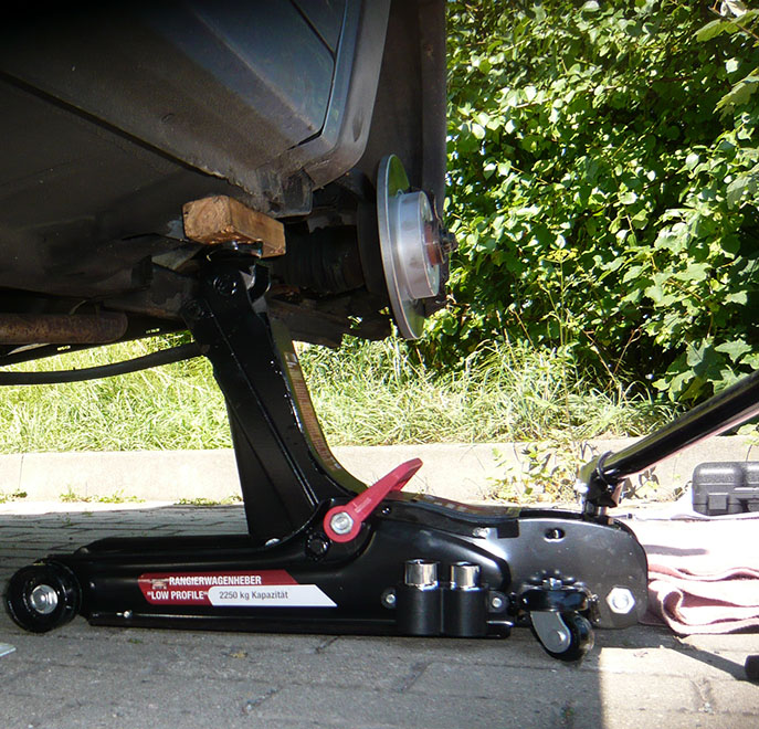 An der Aufnahme der Hinterachse ist das nicht so einfach, da ist mir ein Wagenheber schonmal weggerutscht, als das Auto hoch ging, da sich ja die Achse bewegt.