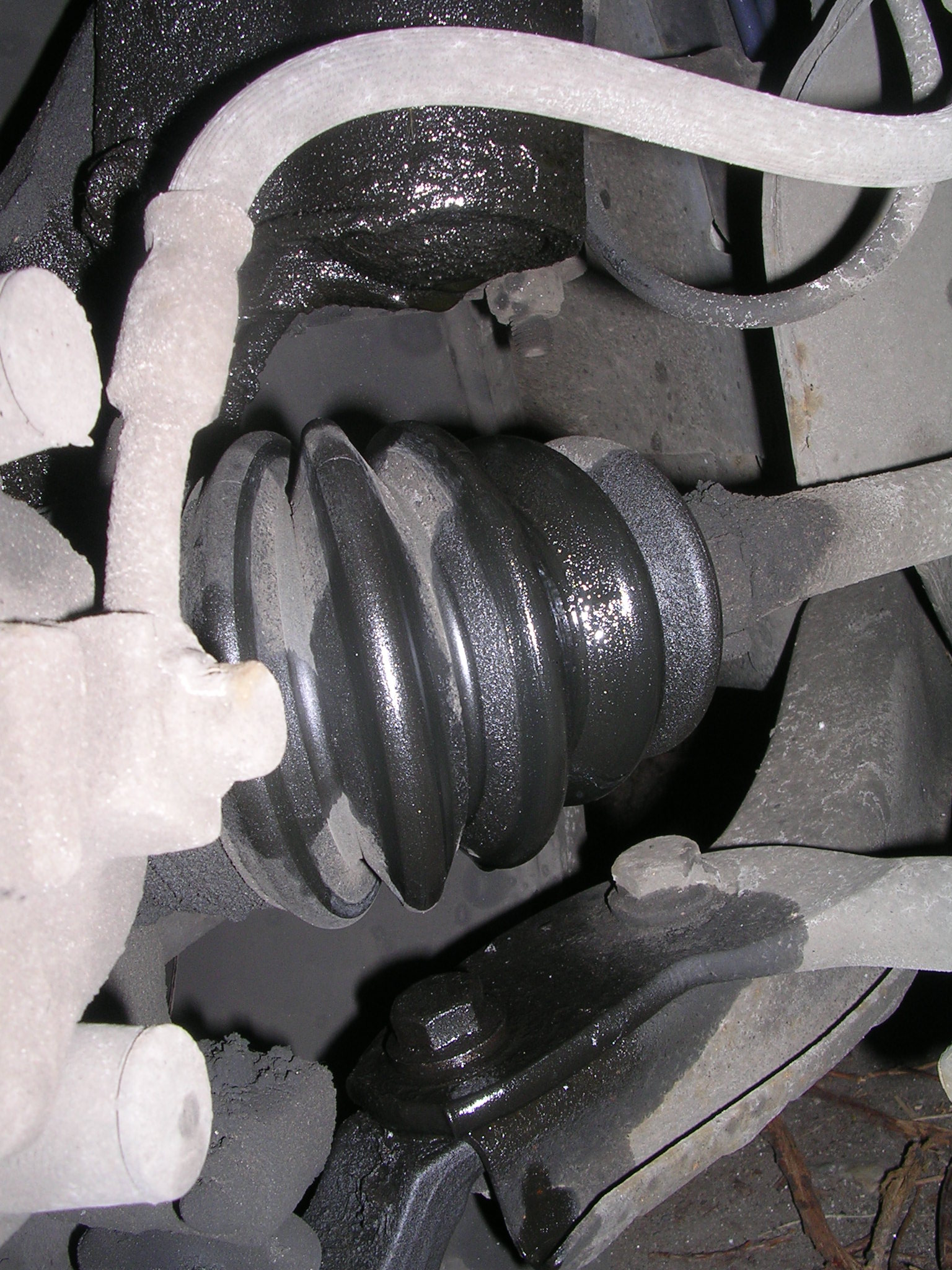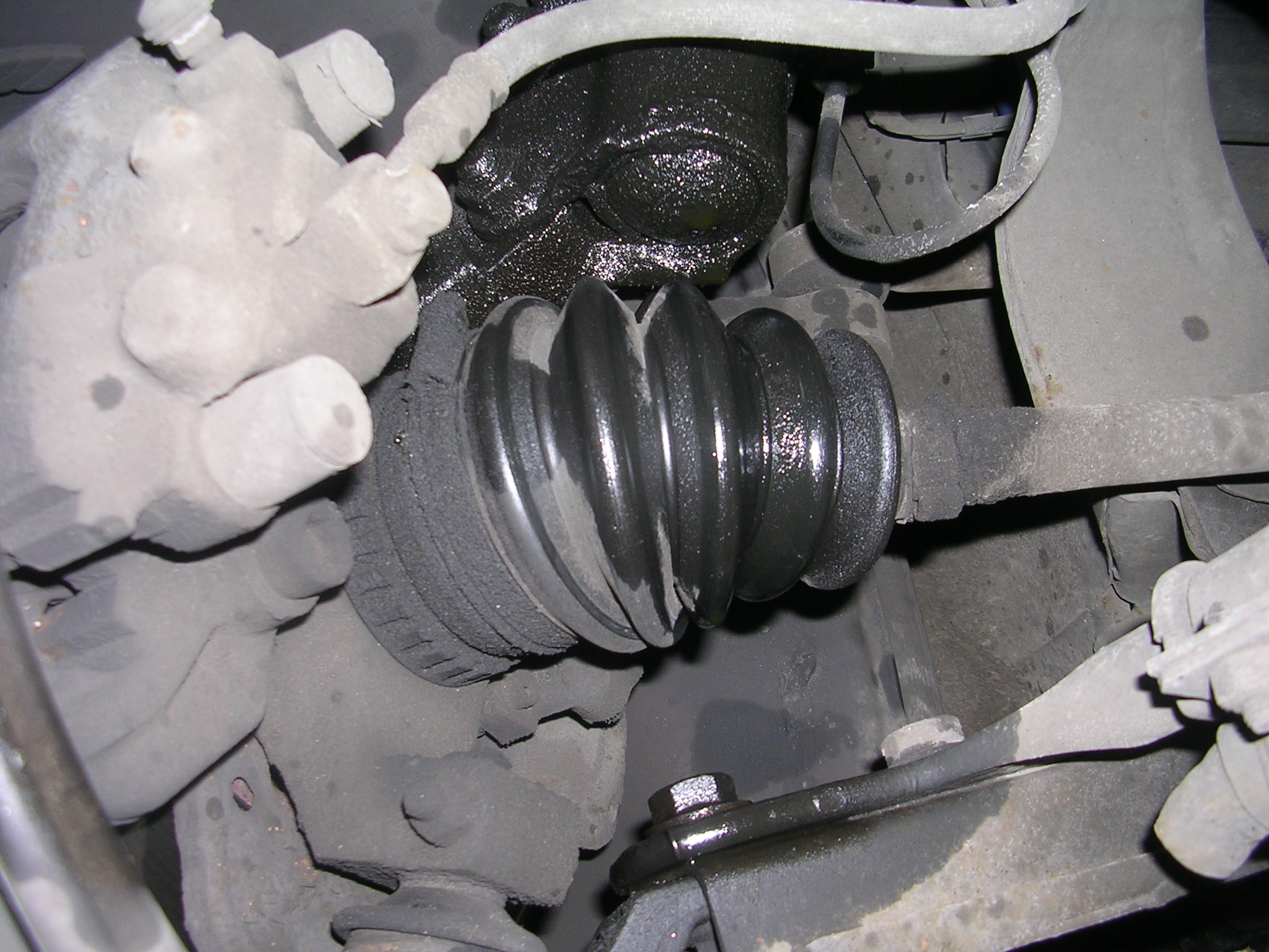 Das Öl ist vom unteren Ende des Stoßdämpfers auf die Gummi-Manschette des Antriebsgelenks herab getropft.