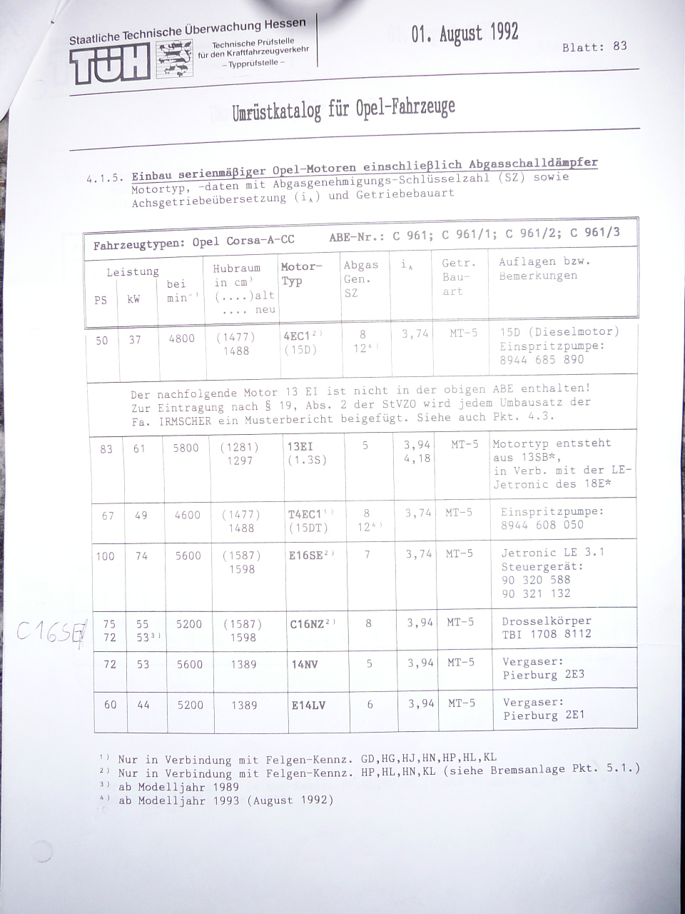 - Fahrzeug: CorsaA e16se/c16nz