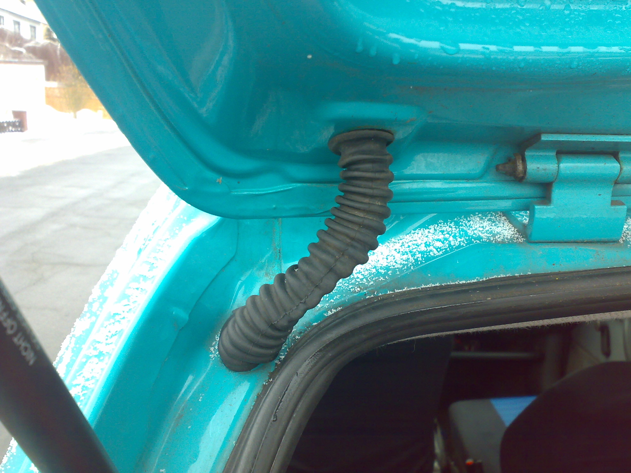 die dichtungen sehen eigentlich noch ziemlich gut aus und sitzen auch richtig. nur sobald es taut, sieht man richtig wie das wasser rein läuft. genauso ist es auch, wenn ich in der waschanlage war... hab mir nur damals keine gedanken gemacht. denk auch mal dass es weniger die dichtungen sind es wird dieser "schlauch" sein der oben an der klappe ist, weiß nur nicht wie ich den da zurechtbiegen soll, egal was ich mache er bleibt so wie er da ist