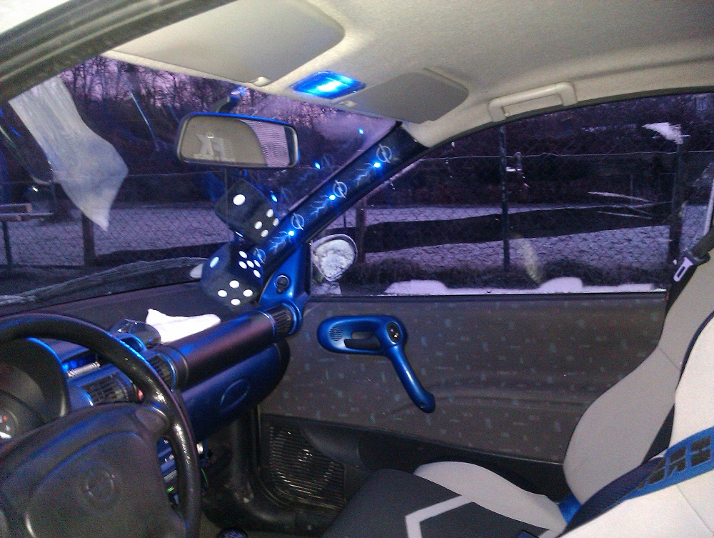 Ein paar der gemachten Kleinigkeiten: Gewindefahrwerk, Haubenverlängerung, Sportauspuff, LED`s im Innenraum, Sportsitze und Sportgurte