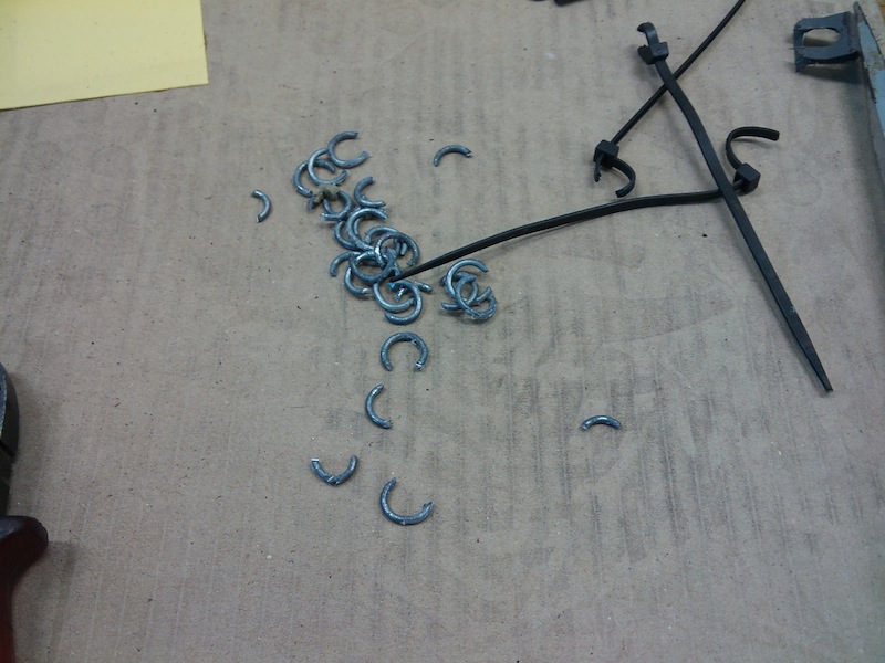 Dann Kabelbinder durchziehen, das geht gut mit einer abgewinkelten Spitzzange, und dann den Stoff wieder auflegen und feststrapsen.