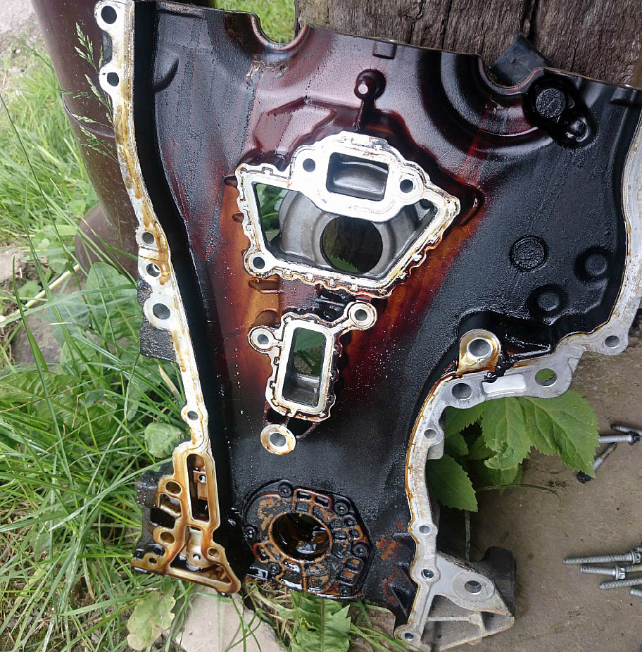 In umgekehrter Reihenfolge sitzt das Steuergehäuse nach der Montage genau richtig (zentriert mittels Passhülsen), an dass dann die Ölwanne angesetzt werden kann.