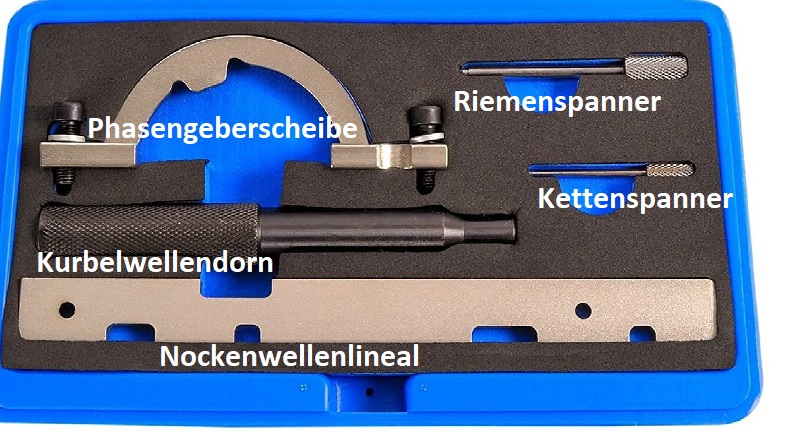 Das Werkzeug der Phasengeberscheibe passt nur in einer bestimmten Position und muss mit den beiliegenden Schrauben am Steuergehäuse zwingend angeschraubt werden!