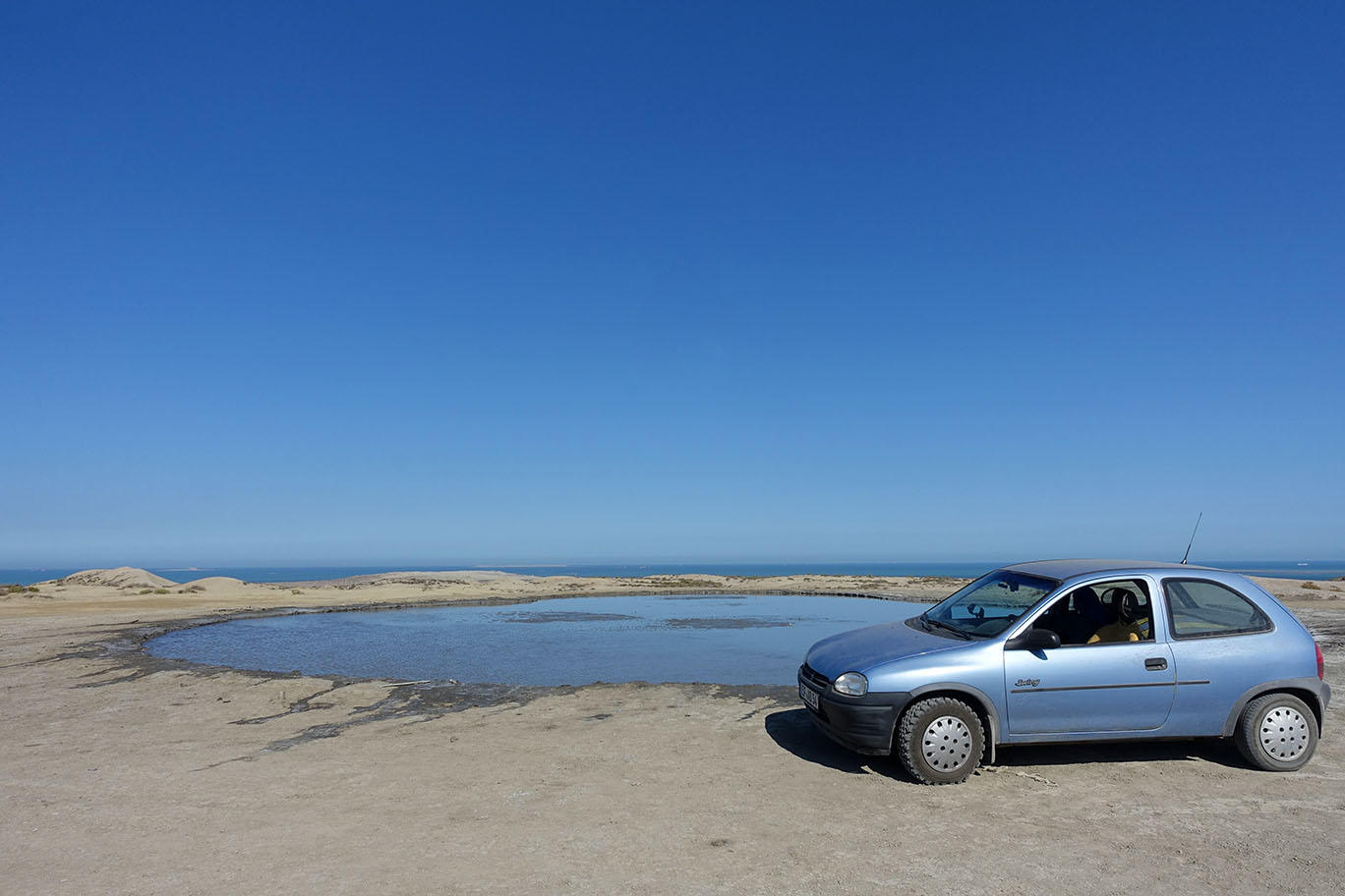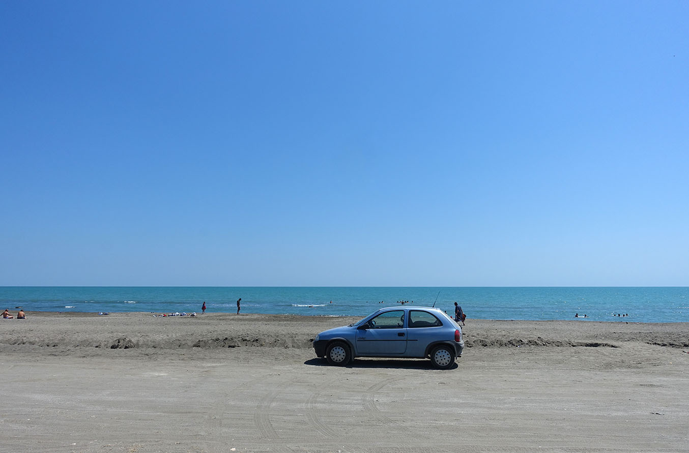 Gestern bin ich über die Grenze nach Azerbaijan. Da wars gleich spannend. Mal abgesehen davon, dass aus verschiedenen Gründen das Baden im Iran kompliziert ist, hatte ich auch keine Gelegenheit, mal ins Wasser zu springen. 300m nach der Grenze war ein fast leerer Strand - und nach fast 5 Wochen Wüste und Felsen war dieses warme Wasser ein Genuss, unglaublich. Ein erster Tankversuch scheiterte an der "interessanten" Kupplungstechnik der Tankstelle. Die hatten einen CNG Anschluss so umgebaut, dass er an mein LPG passte. Ich hatte erst Angst, dass die da wirklich CNG einfüllen. Aber soweit kam es gar nicht. Das flüssige Gas sprühte aus Absperrhahn und Kupplung, sodass nichts im Tank landete.