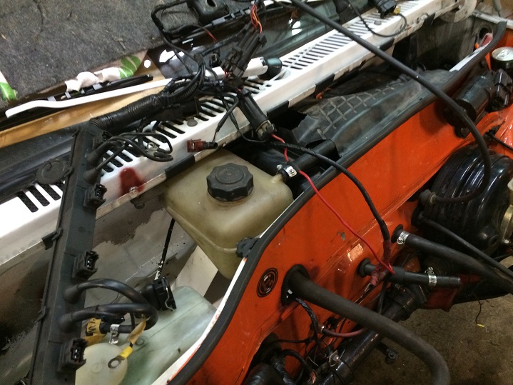 Da mich schon immer der Bowdenzug der Motorhaube gestört hat, der quer durch den Motorraum verlief,
