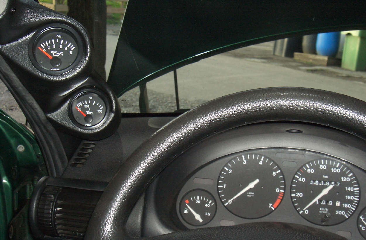 Verbaut sind: Öltemperatur, Öldruck, Benzindruck.