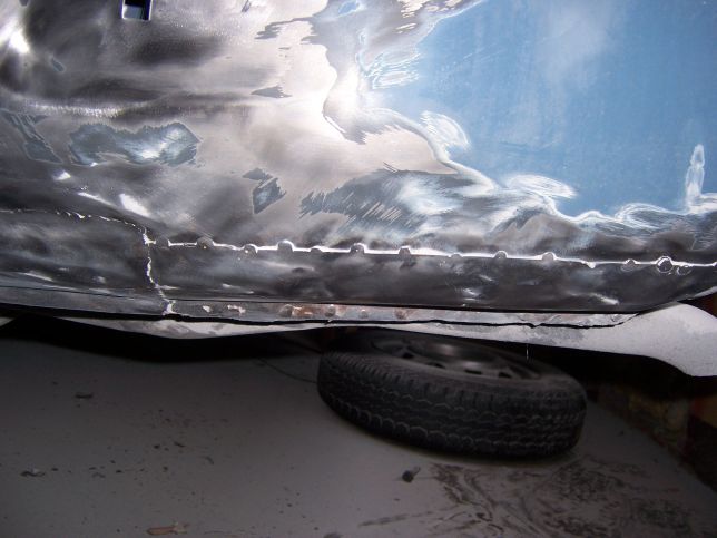 Halt übliche Stellen wie Endspitze Baterieblech sind schlimm hab aber schon alle Bleche neu müsste nur noch geschweißt werden. Bloß die Vögel die ihn mal geschweißt haben waren echte Fuscher ne Menge Spachtel und die Bleche selbst gezimmert und zwar miserabel.