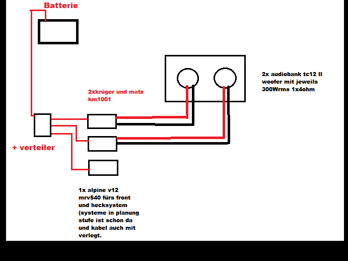 nicht lachen, habe is letzte mal vor 5 jahren mal was am pc gemalt. nur so ne auto ist n vectra b (stufheck) radio ist n alpine 117ri mit lenkradansteuerung. chinchkabel einmal 2 kanal für subwoofer 1x 4kanal für die systeme (zZ. nicht in benutzung)