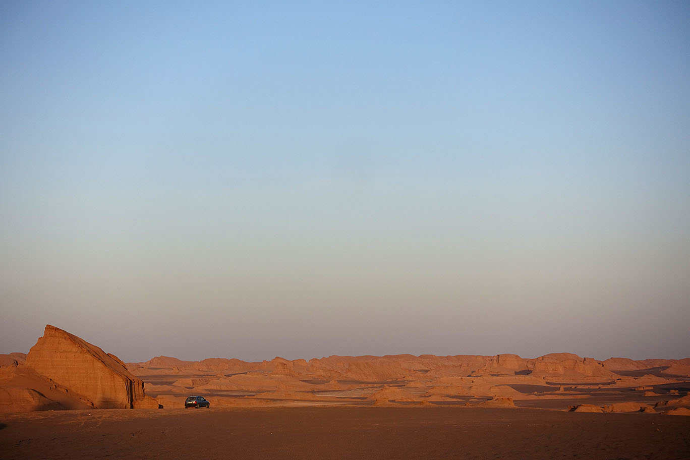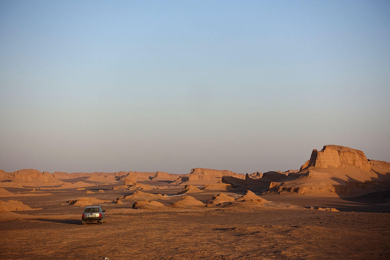 Und ich habe in der Lut-Wüste geschlafen, dem heißesten Ort der Welt. Dort wurden mehrfach 70.7 Grad Celsius gemessen. Bei mir waren es zum Sonnenuntergang nur noch 50 Grad und in der Nacht 41.5 Grad, aber das hat schon auch gereicht.