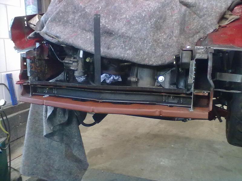 Um den Frontträger korrekt zu verschweißen, muss das Spoilerblech eh weg hab ich festgestellt