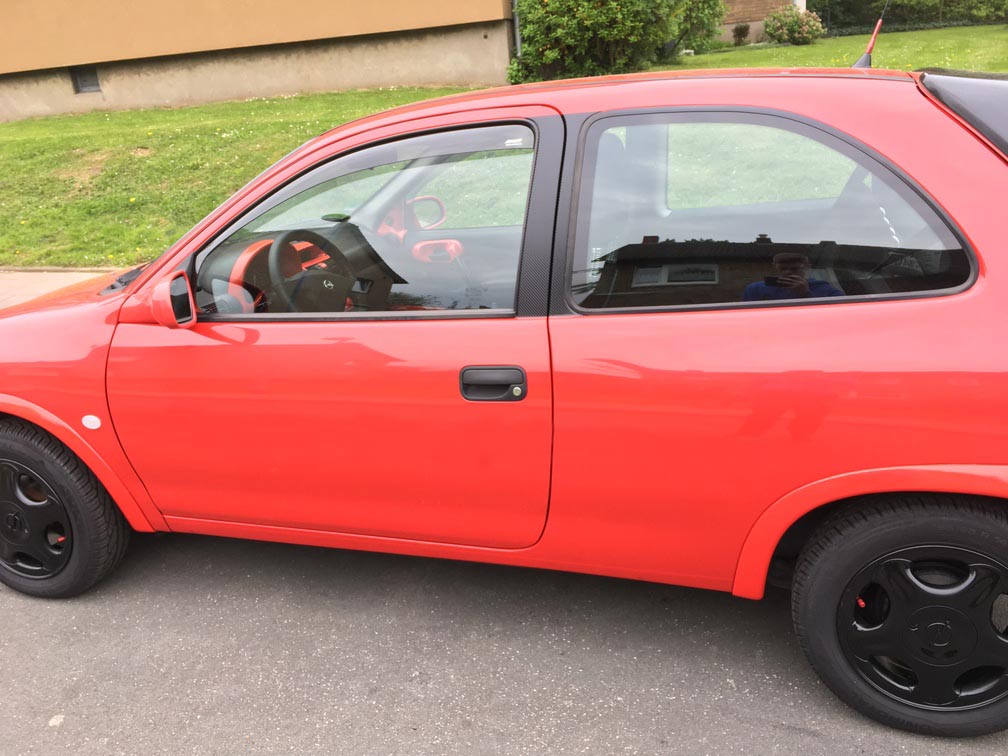 Aber wieso die schwarzen Spiegel? Ist vermutlich Geschmackssache, aber ich fand die schwarzen Spiegel an B-Corsa immer unschön, hab beim Farbeimer ja deshalb extra farbige angebaut, wenn auch nicht in Wagenfarbe