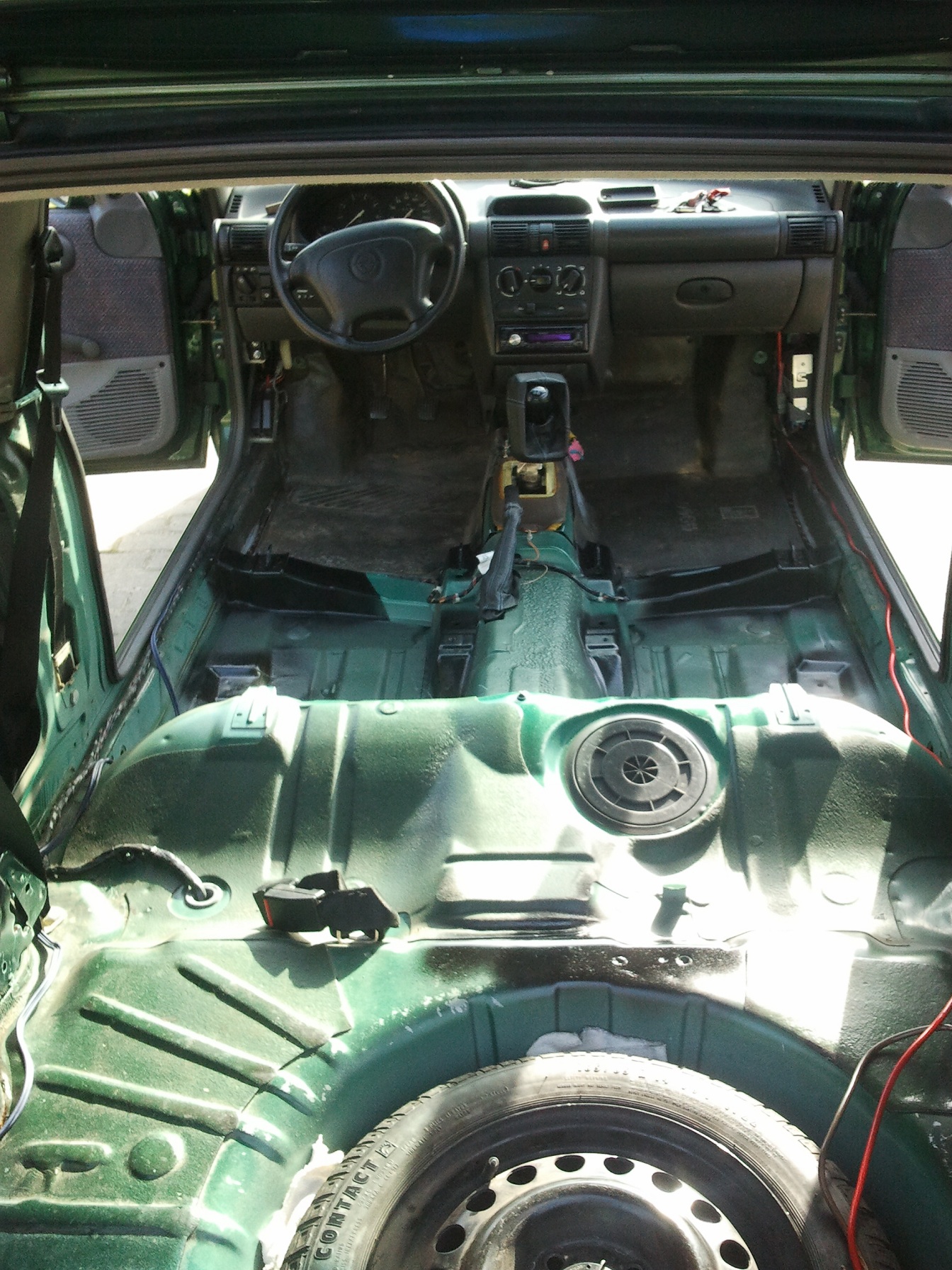 Dann kam stück für stück erstmal der Neue schwarze Teppich rein, danach die schwarzen Seiten und Türverkleidungen, anschließend die Rücksitzbank, und zum Schluss die Sitze.