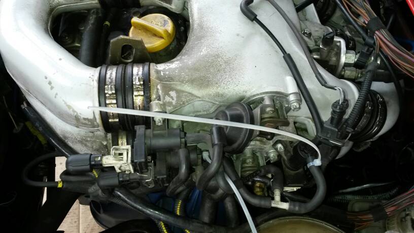 schau mal unter die Drosselklappe.Da ist ein Schlauch dran.Wo geht der hin?