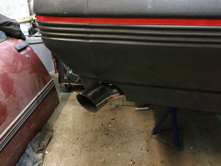 Das Wasser kommt schön mittig hinter dem Motor her.