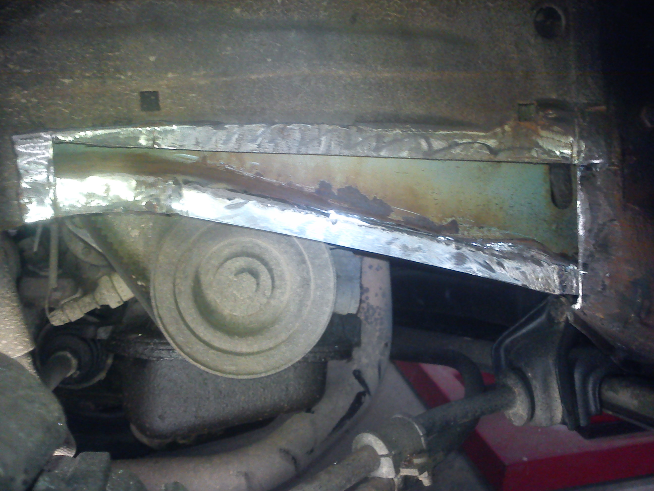 Was tun auf den Schreck, schließlich ist das ein tragendes Teil und da einfach ein Blech drauf zu zimmern nur damit es der TÜV Prüfer nicht sieht wäre wohl nicht Sinn der Sache gewesen. Hab den Rost großflächig rausgeschnitten und durch 1mm dickes Blech ersetzt, richtige Schweißnähte gezogen, massive Schweißpunkte gesetzt und alles nach bestem Wissen und Gewissen instand gesetzt. Ganz böses Foul, nun ist es zum Glück beseitigt aber definitiv erschreckend wie das in dem Träger aussah...von aussen war es gar nicht so gravierend.